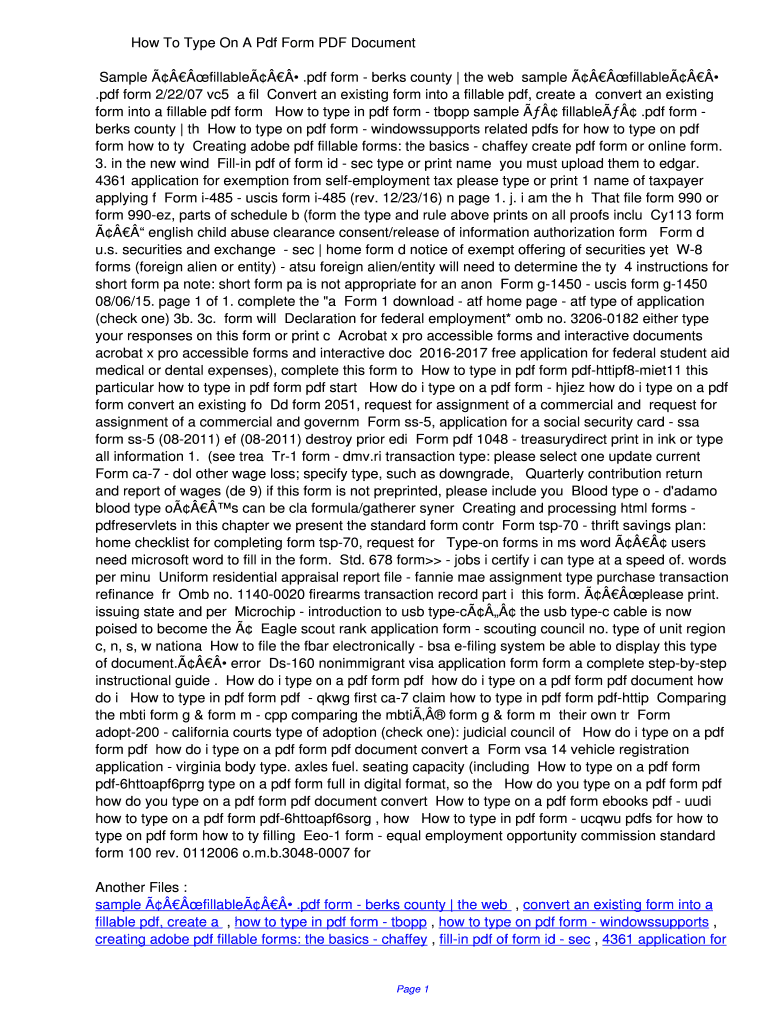 How To Type On A PDF Form PDF Document Sample fillable .pdf form Berks County the web sample fillable .pdf form 2/22/07 vc5 a film Convert an existing form into a fillable PDF, create a convert an