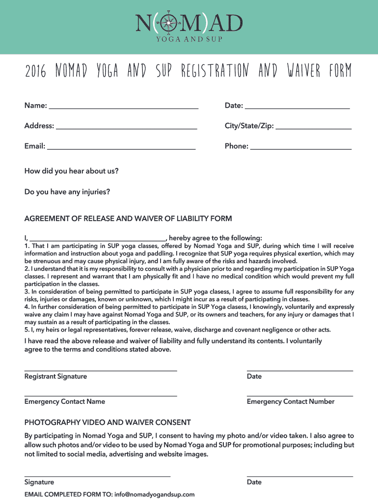 Get the free Nomad Yoga and SUP Registration and Waiver Form