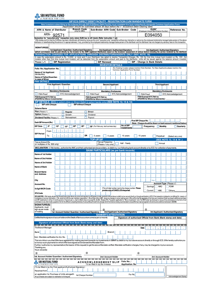 Any individual or entity looking to invest in SBI mutual funds through SIP with automatic debit facility needs to fill out the SBI SIP autodebit formpdf.
