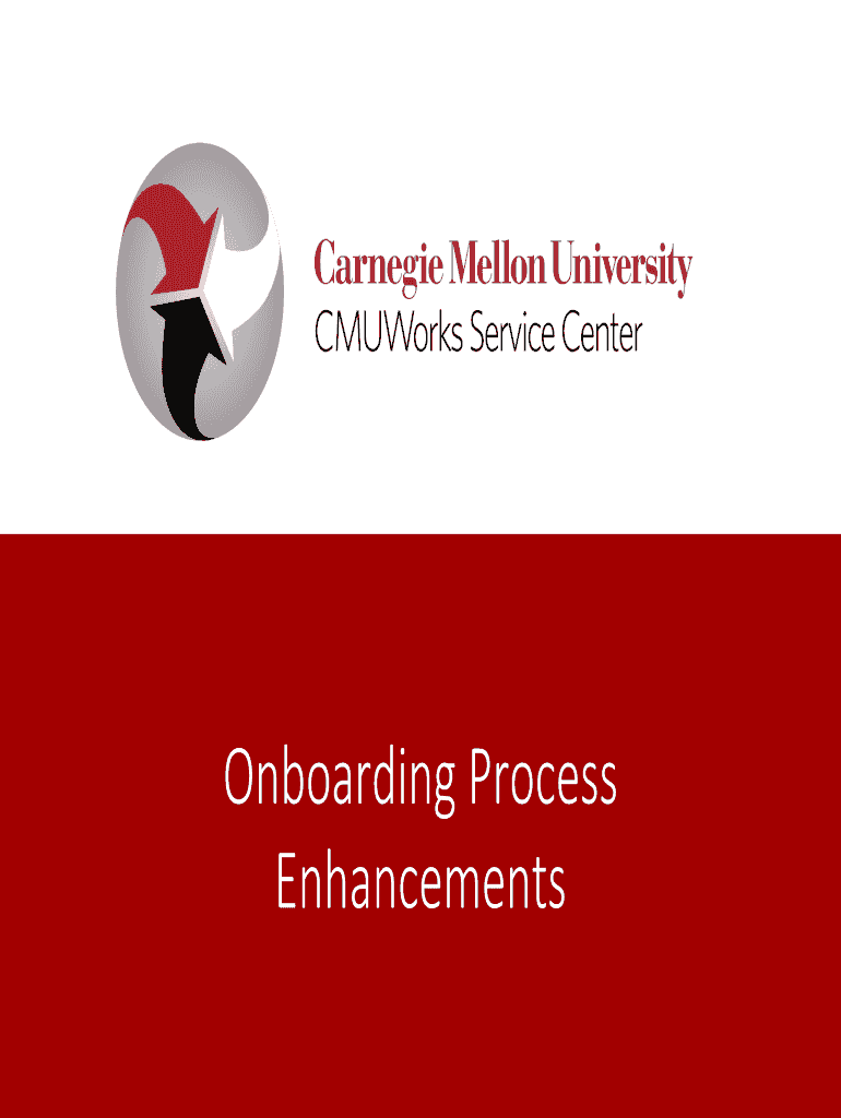 Onboarding Process EnhancementsAgenda Items Personal Email Address Enhanced Onboarding Checklists Onboarding Information for Departments Form I9 Requirements Returning Faculty and Staff Employment