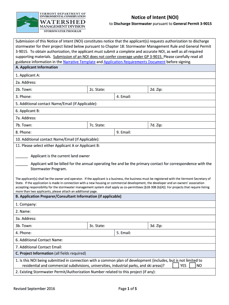 Get the free Notice of Intent (NOI) - Vermont