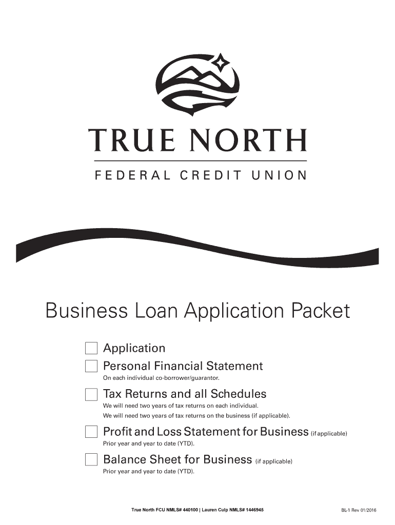Get the free Business Loan Application Packet - truenorthfcu.org