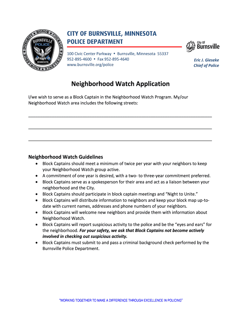 Get the free Block Captain Application.docx - ci burnsville mn