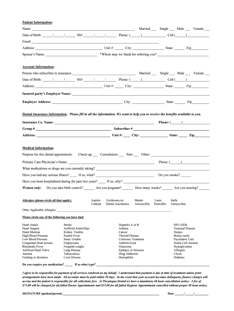 Patient Information: Name Married Single Male Female Date of Birth: / / SS# / / Phone: () Cell () Email Address: Unit #: City: State: Zip Spouses Name: *Whom may we thank for referring you? Account