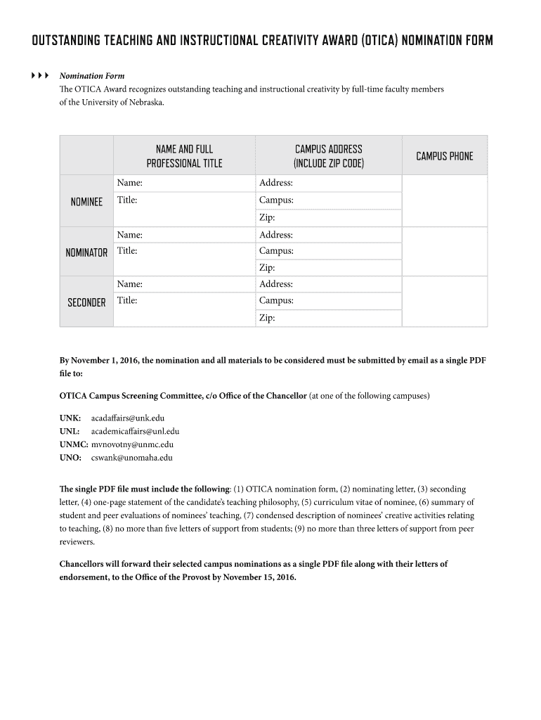 Get the free OUTSTANDING TEACHING AND INSTRUCTIONAL CREATIVITY AWARD (OTICA) NOMINATION FORM - ne...