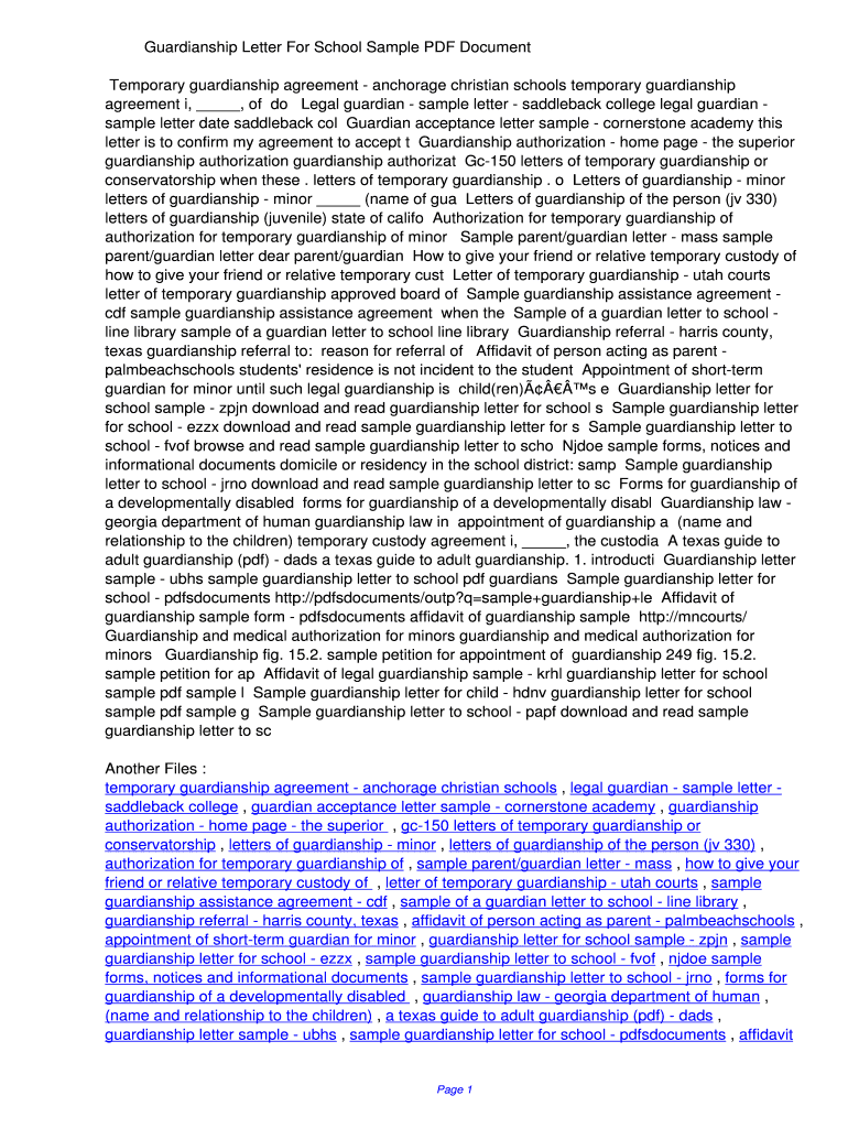 Get the free Guardianship Letter For School Sample PDF 0ea8658d73c5b23b7fdd5a1802798a67. Guardian...
