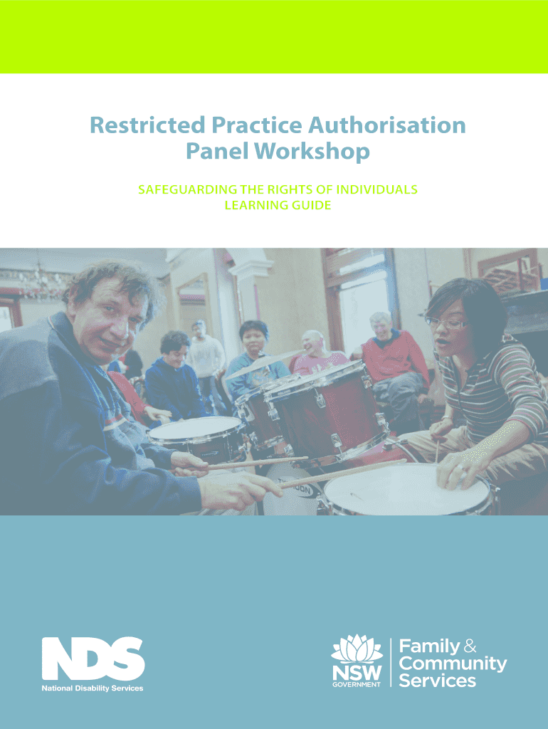 Restricted Practice Authorization Panel Workshop Safeguarding the rights of Individuals LEARNING GUIDE Published 2015 Copyright National Disability Services 2015 This publication is copyright. Other
