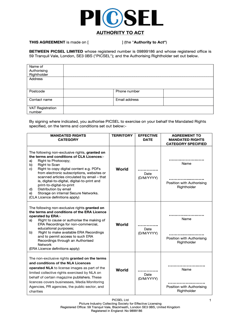 Submit the completed Picsel Mandate form to the relevant authority or recipient