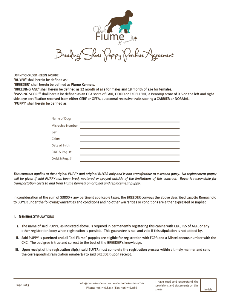 How to fill out breedingshow puppy purchase agreement