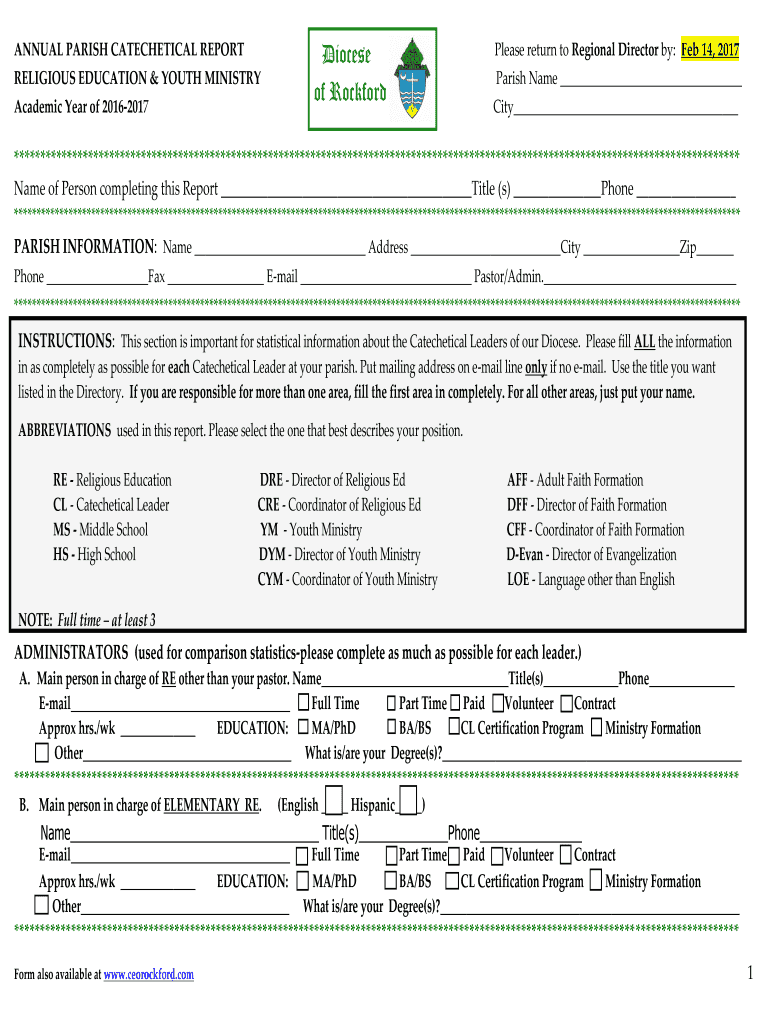 Fill out your annual parish catechetical report online with pdfFiller!