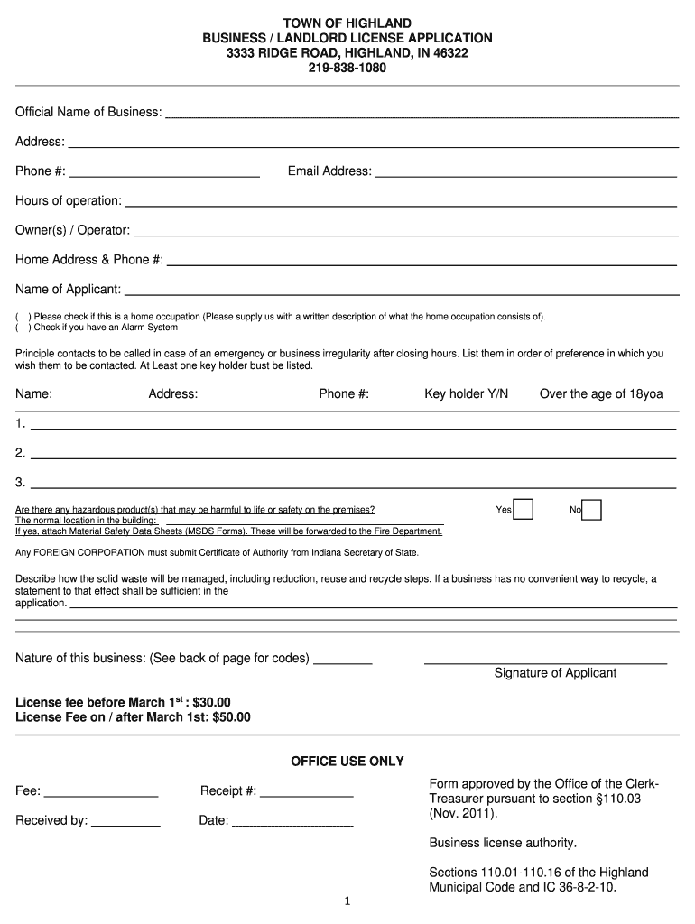 Get the free new business license application - highland.in.gov - highland in