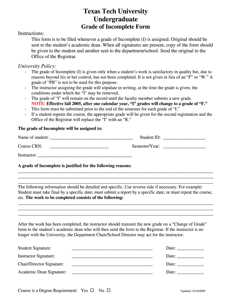 Get the free NEW! Online Grade of Incomplete Form - depts.ttu.edu - depts ttu