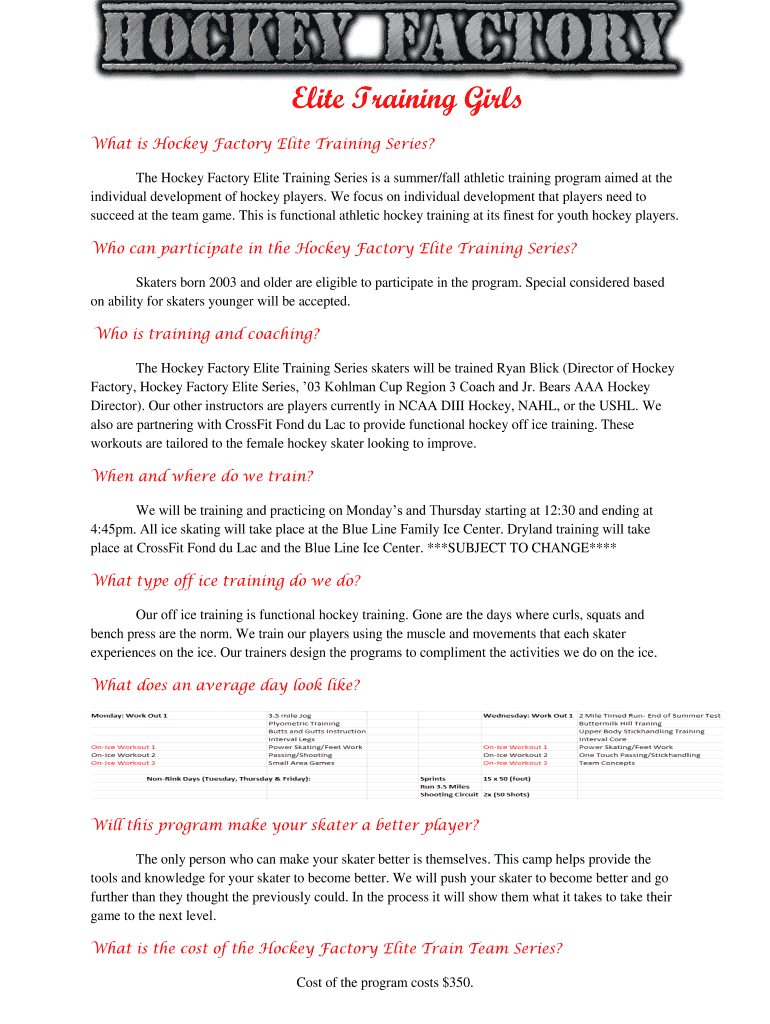 To fill out elite training girls, you will need to provide detailed information about the program, participants, schedules, and any other relevant details.