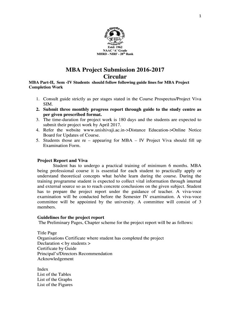 1 ESD: 1962 NAACP A Grade MHD NIR 28th Rank MBA Project Submission 20162017 Circular MBA Part, SEM IV Students should follow following guidelines for MBA Project Completion Work 1. Consult guide strictly