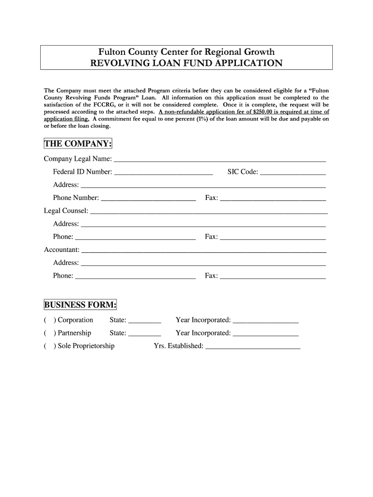Get the free (CDBG) Revolving Loan Fund Application - Fulton County Center for ... - fccrg