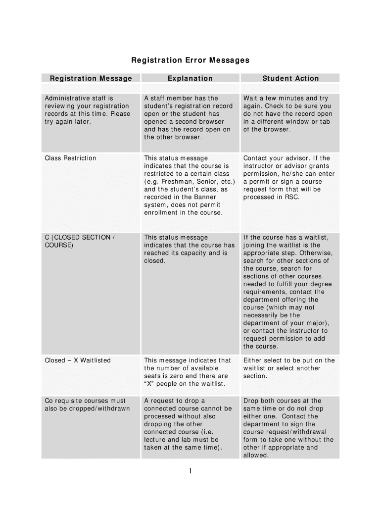 Registration MessageExplanationStudent ActionAdministrative staff is