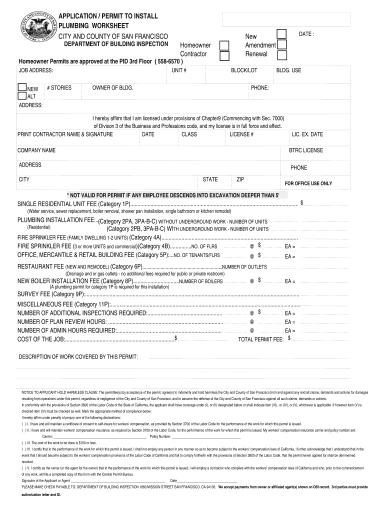 The PID plumbing worksheet is filled out by providing information about plumbing inspections, repairs, and installations on a property.
