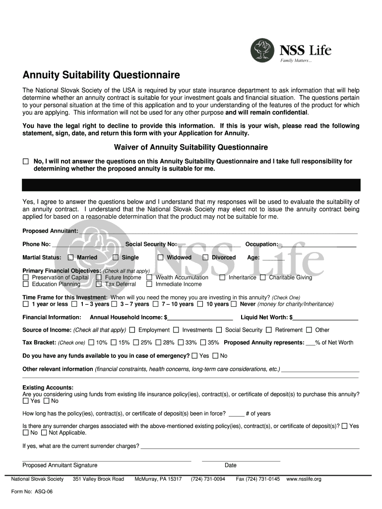 Read the annuity suitability questionnairedoc carefully to understand the purpose and instructions.