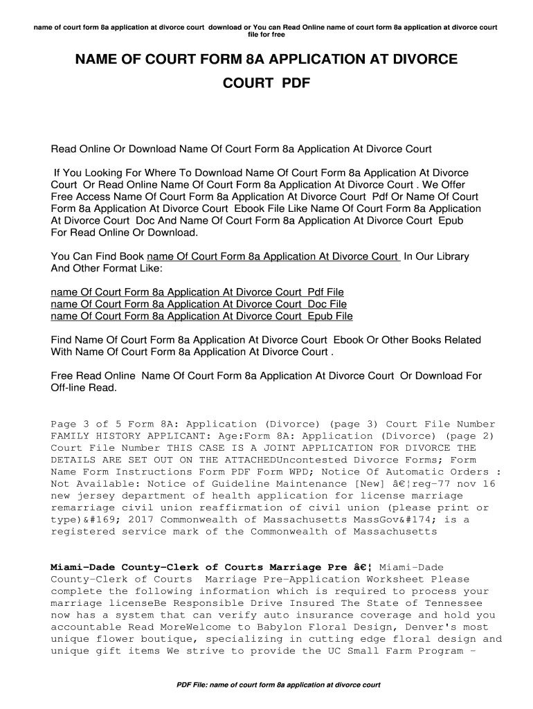 Name of court form 8a application at divorce court download, or You can Read Online name of court form 8a application at divorce court file for free NAME OF COURT FORM 8A APPLICATION AT DIVORCE COURT