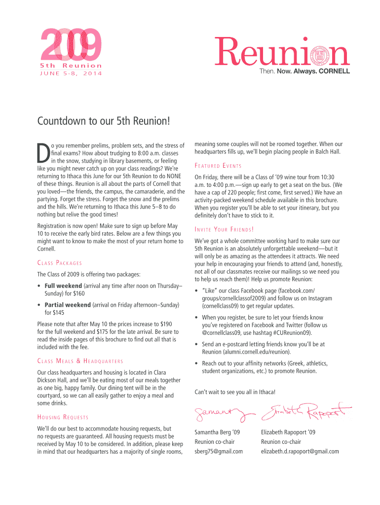 Get the free Class of 2009 Reunion Brochure - Cornell Alumni - alumni cornell