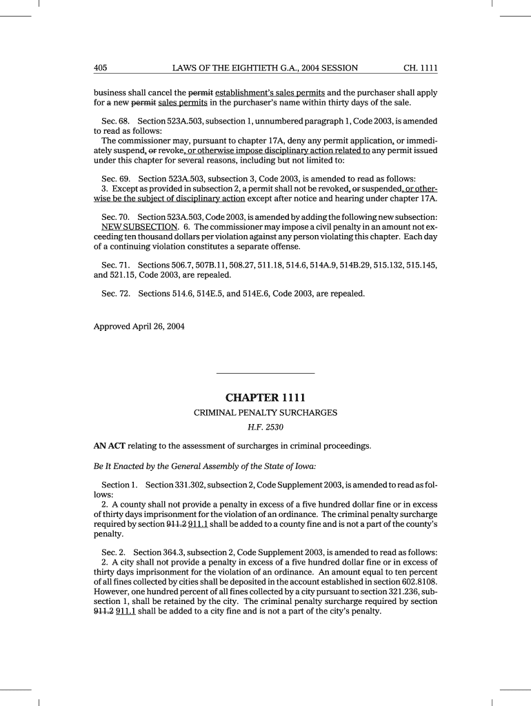 405 LAWS OF THE EIGHTIETH G.A., 2004 SESSION CH. 1111 business shall cancel the permit establishments sales permits and the purchaser shall apply for a new permit sales permits in the purchasers name