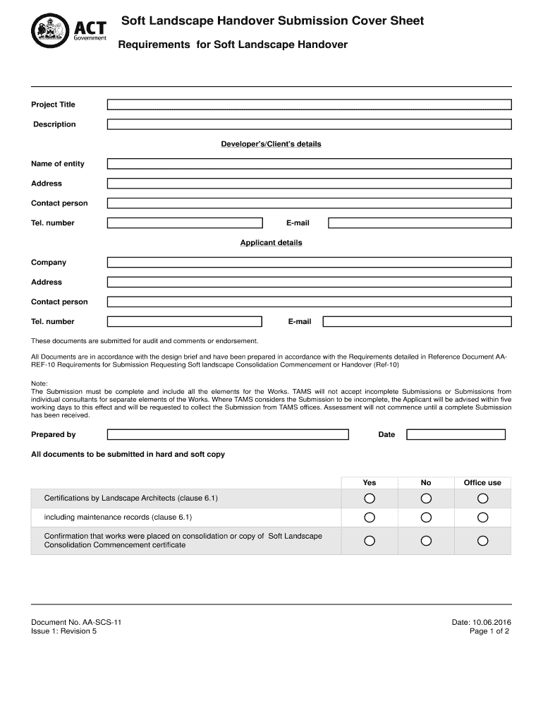 Get the free Soft Landscape Handover Submission Cover Sheet - tccs act gov