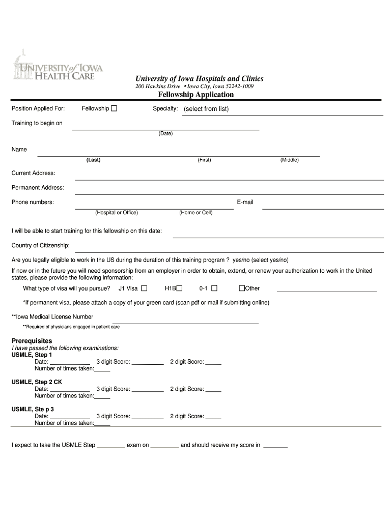 Get the free University of Iowa Hospitals and Clinics Fellowship Application - gme medicine uiowa