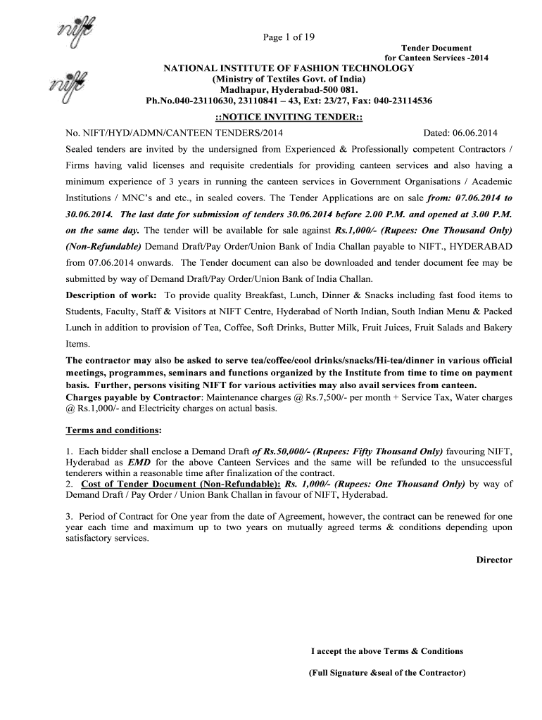 Get the free Tender Document for Canteen Services -2014 NATIONAL ...