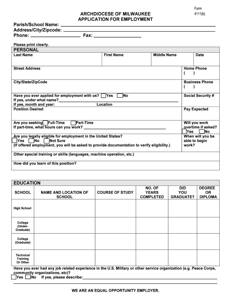 APPLICATION FOR EMPLOYMENT Parish/School Name: ... May we contact the employers listed above? ... describe in detail.