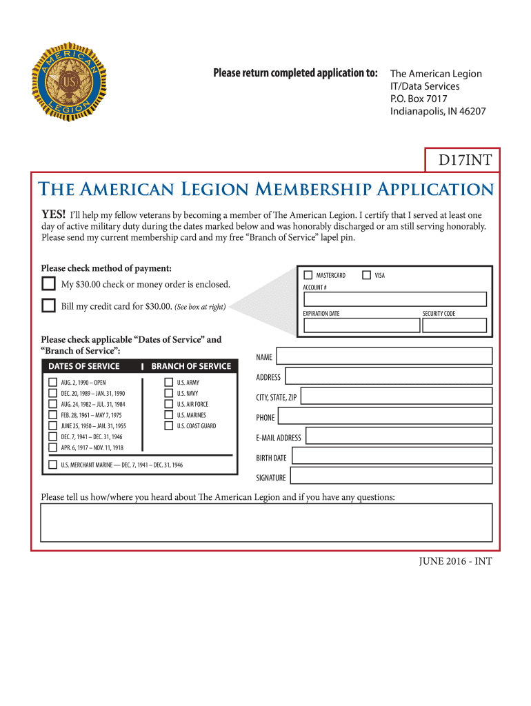 Get the free Please return completed application to: - legion