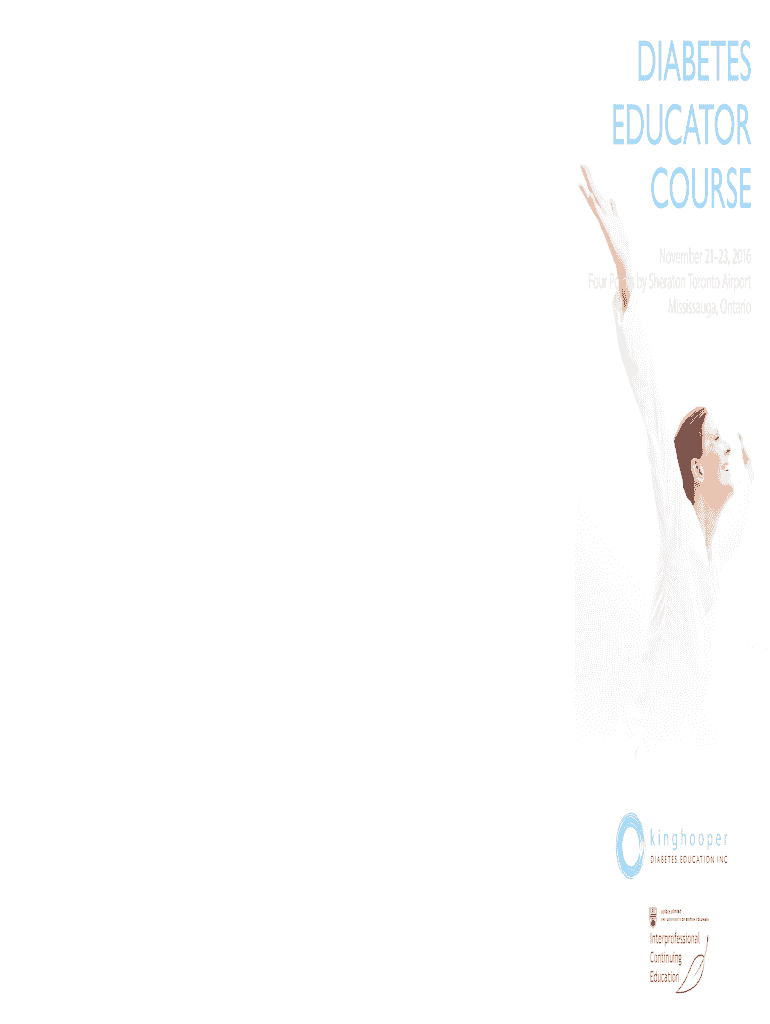 DIABETES EDUCATOR COURSE Register ONLINE: interprofessional.ubc.ca/IN9568 Register by PHONE: +1.855.827.3112 (Toll free) or +1.604.827.3112 (Vancouver) November 2123, 2016 Four Points by Sheraton