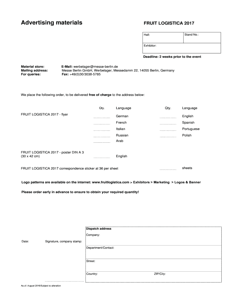 Fill out your fl-advertising materials - messe online with pdfFiller!