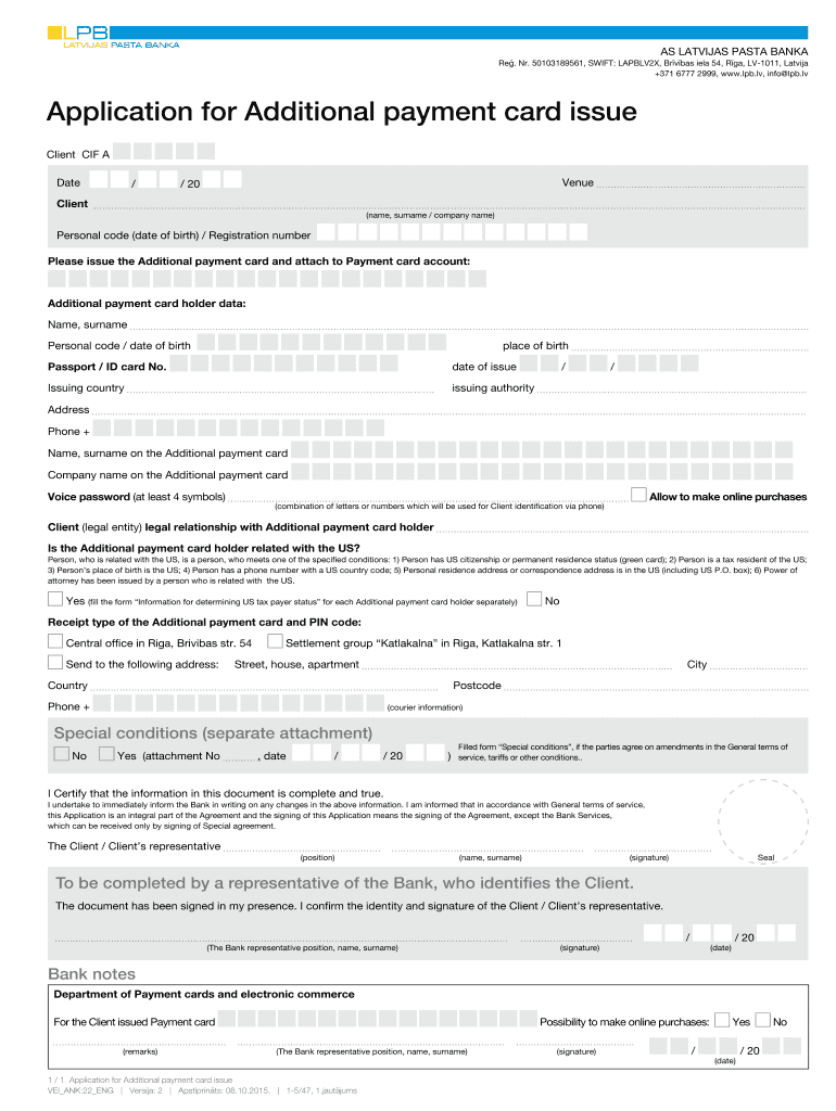 Get the free 50103189561, SWIFT: LAPBLV2X, Br v bas iela 54, R ga, LV-1011, Latvija