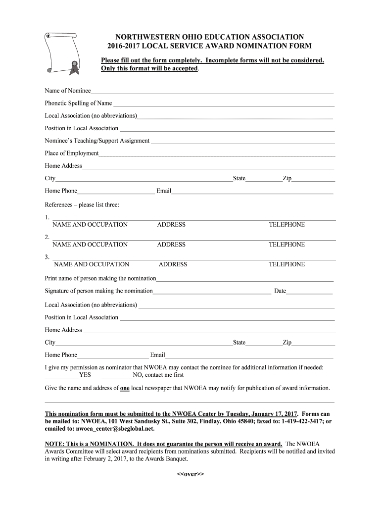 To fill out a local service award nomination, one must carefully follow the guidelines provided by the awarding organization and provide detailed information about the nominee's service.