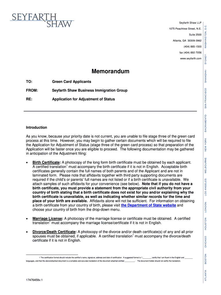 Get the free 17476459 1 BIG - ImmSTAR Memorandum - Application for Adjustment of Status.DOCX