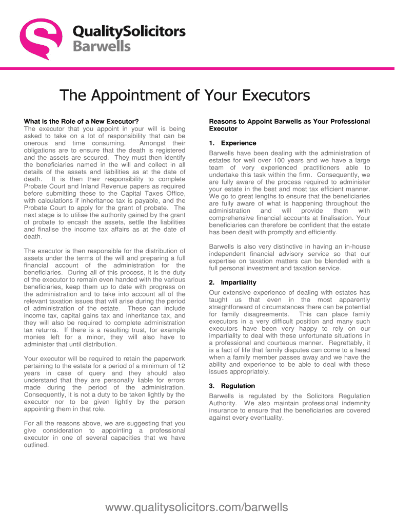 Get the free The Appointment of Your Executors