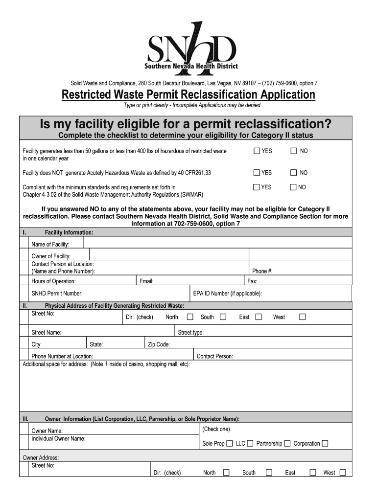 Get the free Apply for Category II Restricted Waste Management Permit - southernnevadahealthdistrict