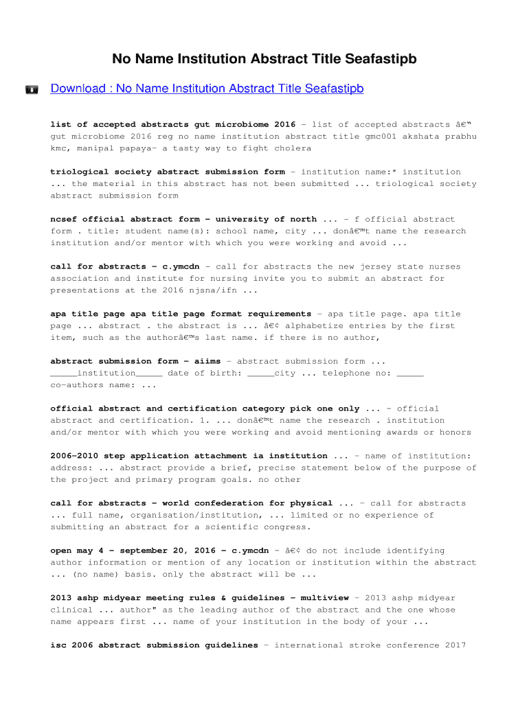 How to fill out no name institution abstract