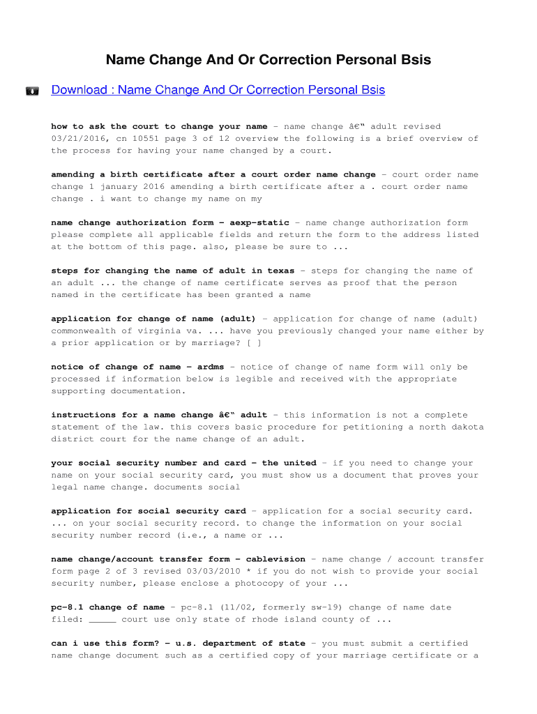 Name Change And Or Correction Personal Basis Download : Name Change And Or Correction Personal Basis how to ask the court to change your name change adult revised 03/21/2016, CN 10551 page 3 of 12