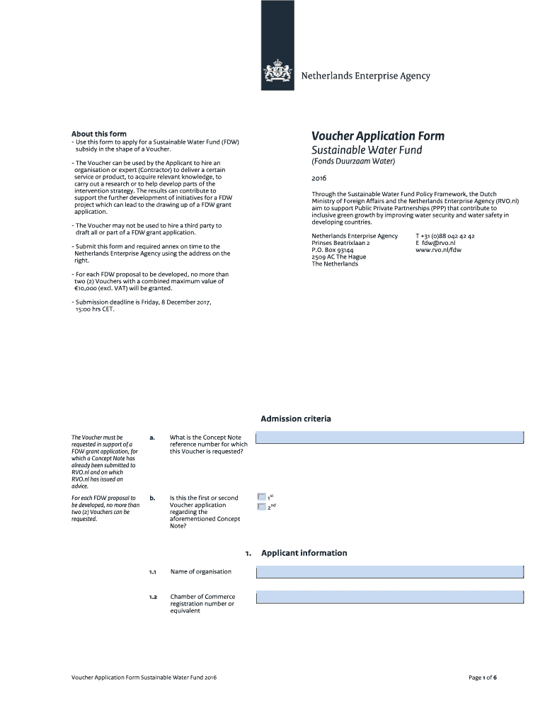 Voucher Application Form Sustainable Water Fund 2016-Page 1 of 6 ... Commission as a company ... — I hereby declare I have filled out this application.