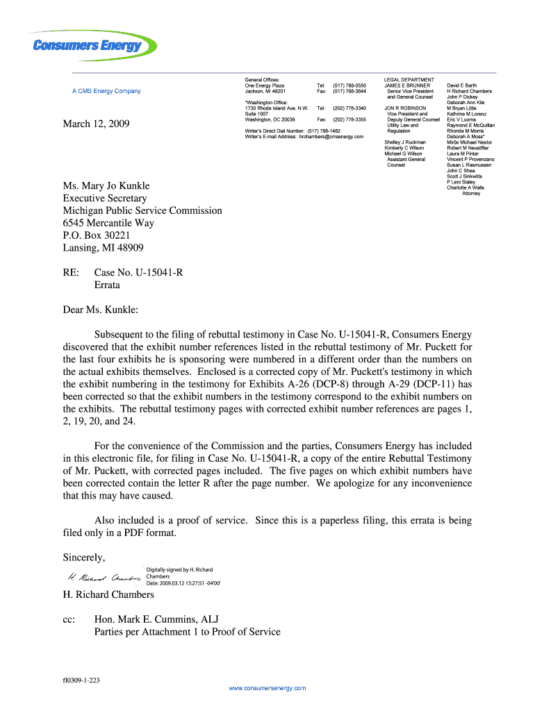 A CMS Energy Company and General Counsel ... David E Barth: H Richard Chambers. John P Dickey. Deborah Ann Mile. M Bryan Little.