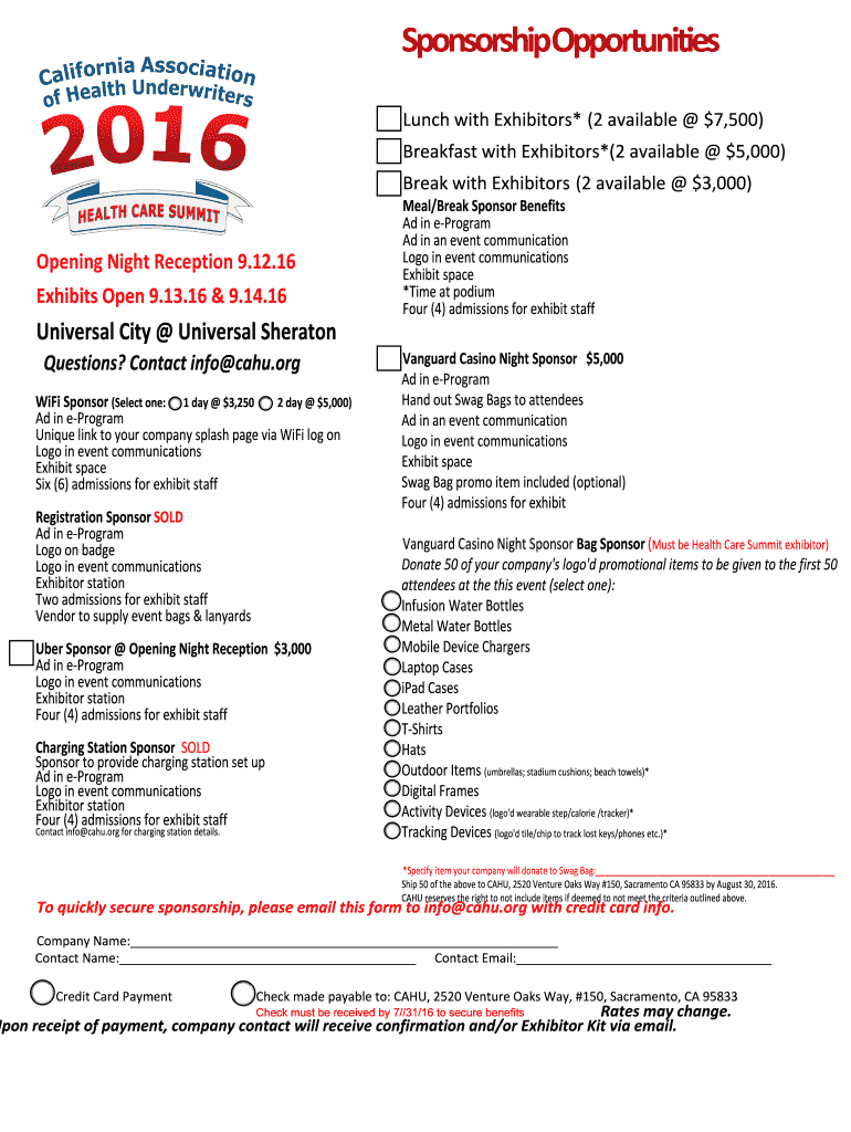 31 Jul 2016 ... ... Oaks Way #150, Sacramento CA 95833 by August 30, 2016. ... To quickly secure sponsorship, please email this form to info Oahu.org with ...