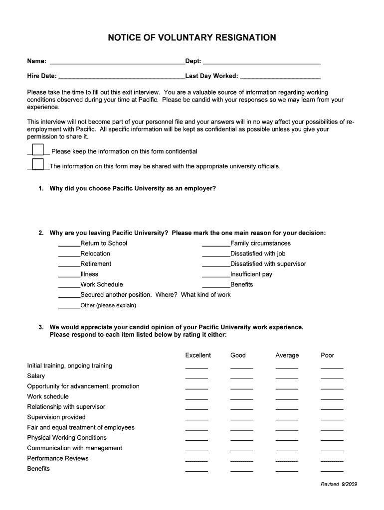 Get the free NOTICE OF VOLUNTARY RESIGNATIONExit Interview-1 - pacificu