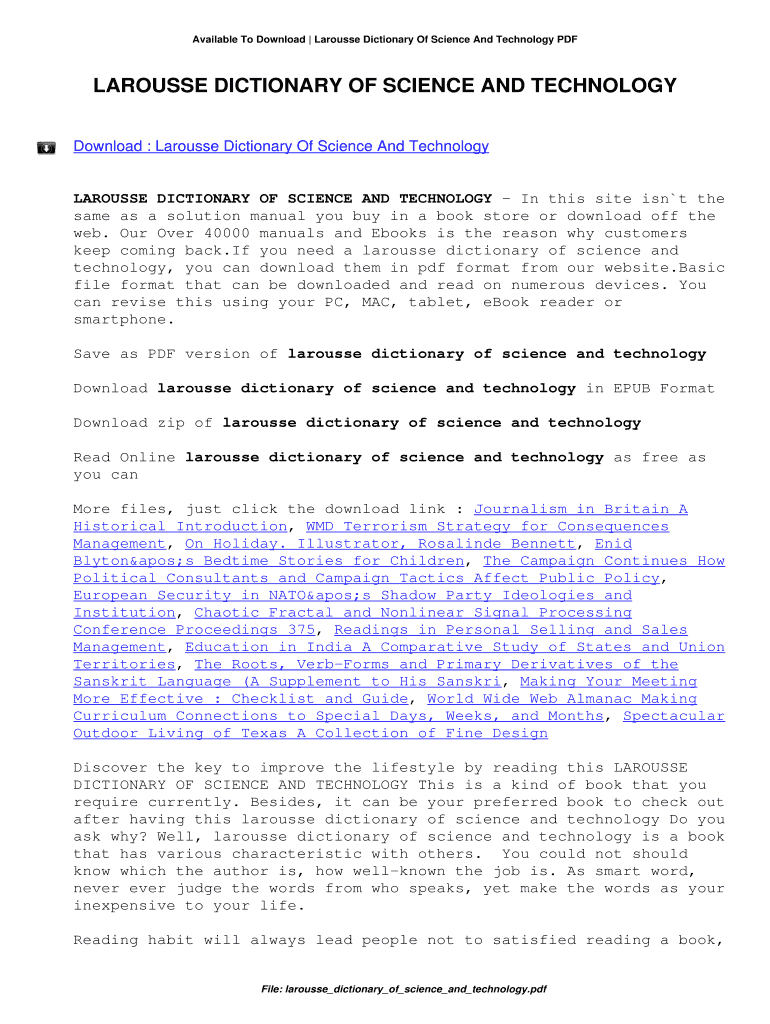 Get the free Larousse Dictionary Of Science And Technology. Larousse Dictionary Of Science And Te...