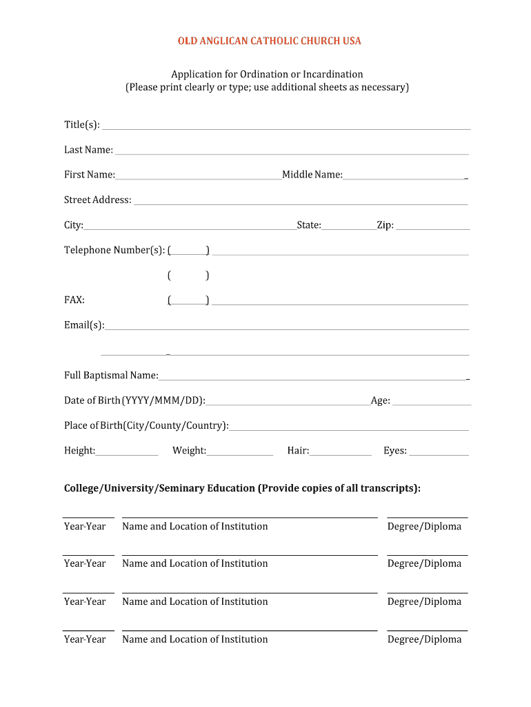 Get the free Application!for!Ordination!or!Incardination! Title(s):! - oaccusa