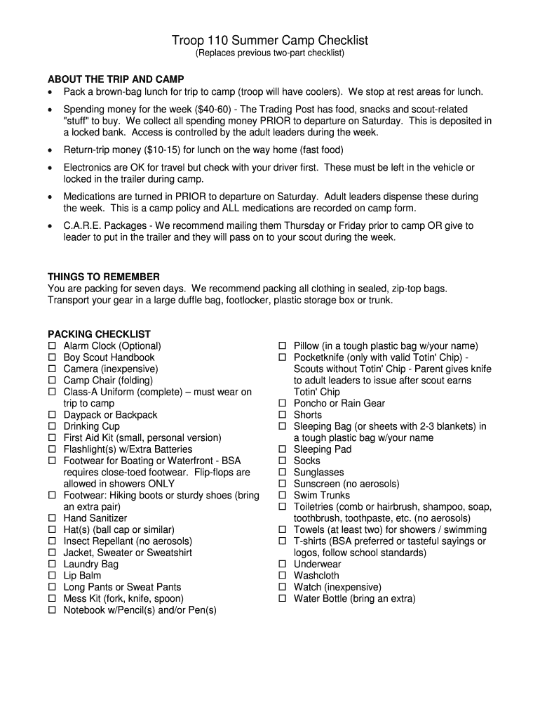 Get the free Troop 110 Summer Camp Checklist - BSA110.com