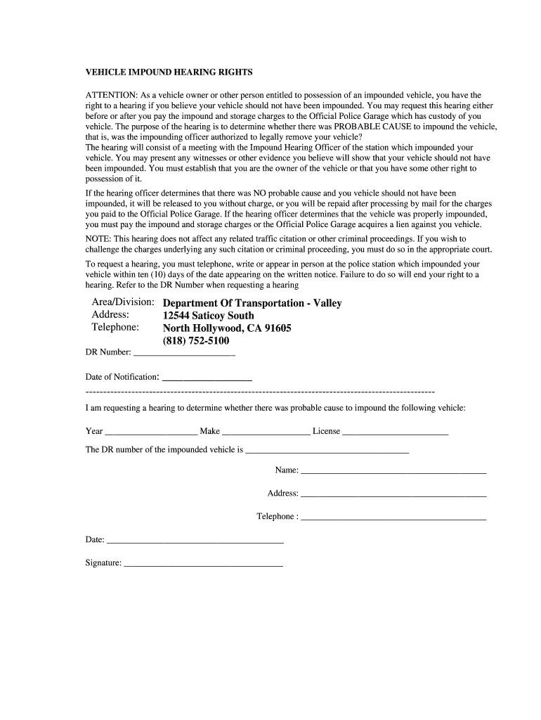 How to fill out vehicle impound hearing rights