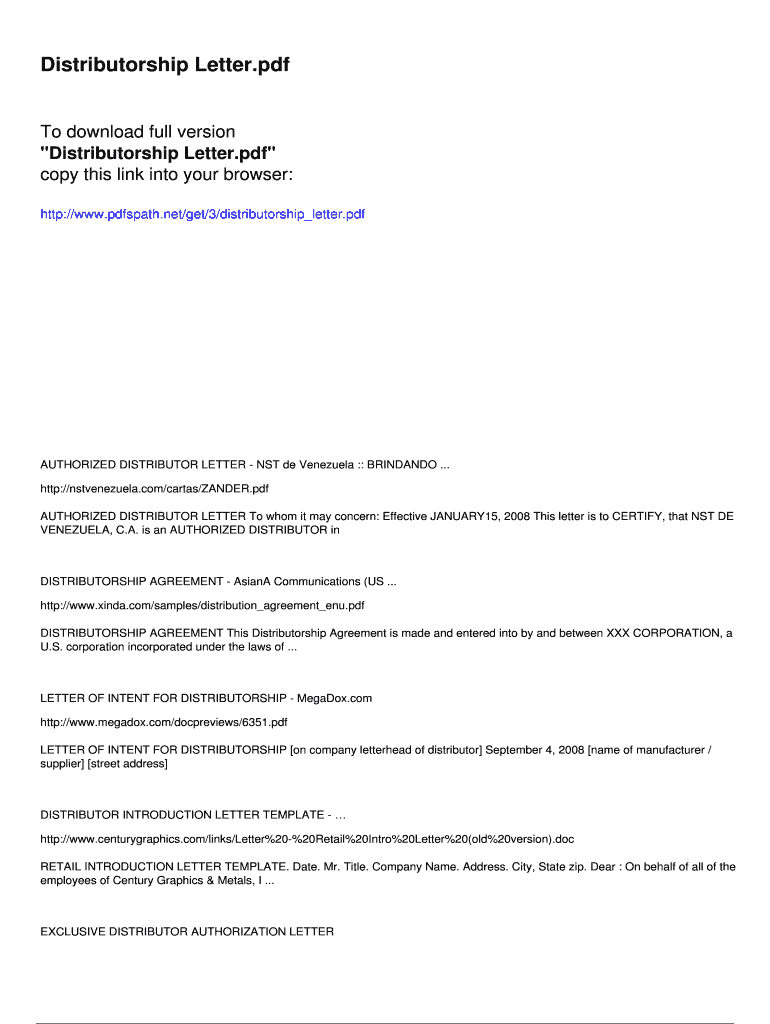 Distributorship Letter.pdf To download full version “Distributorship Letter.pdf copy this link into your browser: http://www.pdfspath.net/get/3/distributorship letter.pdf AUTHORIZED DISTRIBUTOR