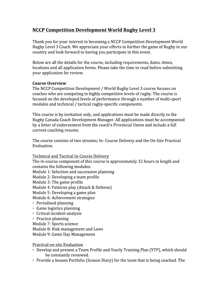 Get the free NCCP Competition Development World Rugby Level 3 - coach rugbycanada