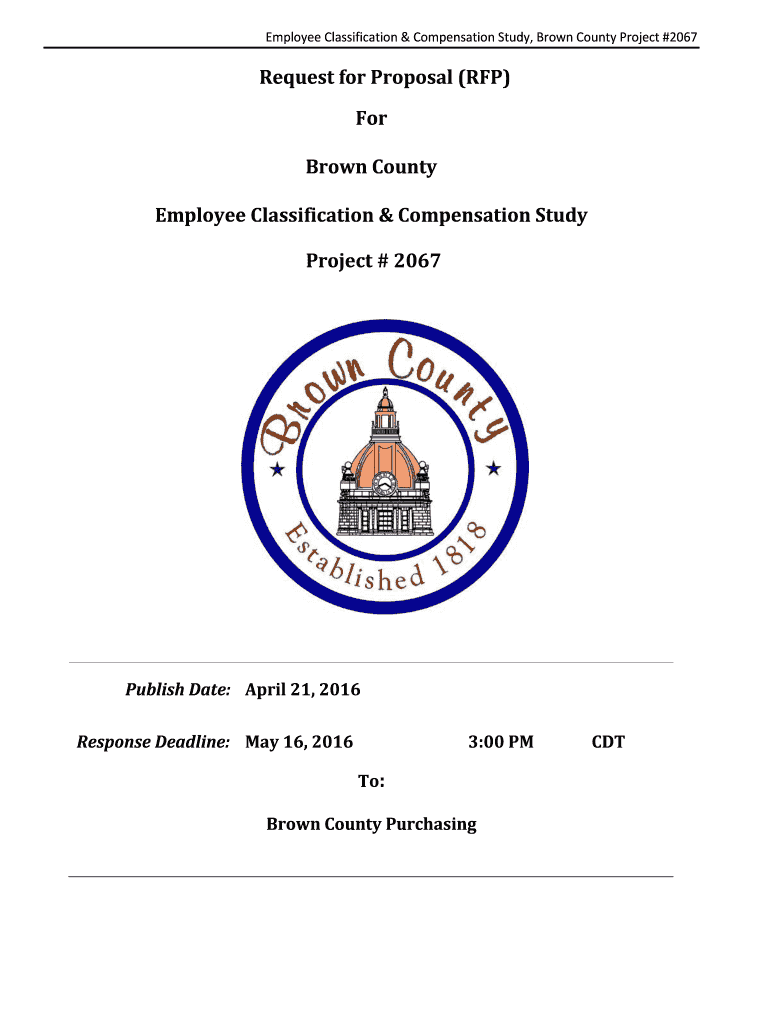 Employee Classification & Compensation Study, Brown County Project #2067 Request for Proposal (RFP) For Brown County Employee Classification & Compensation Study Project # 2067 Publish Date: April